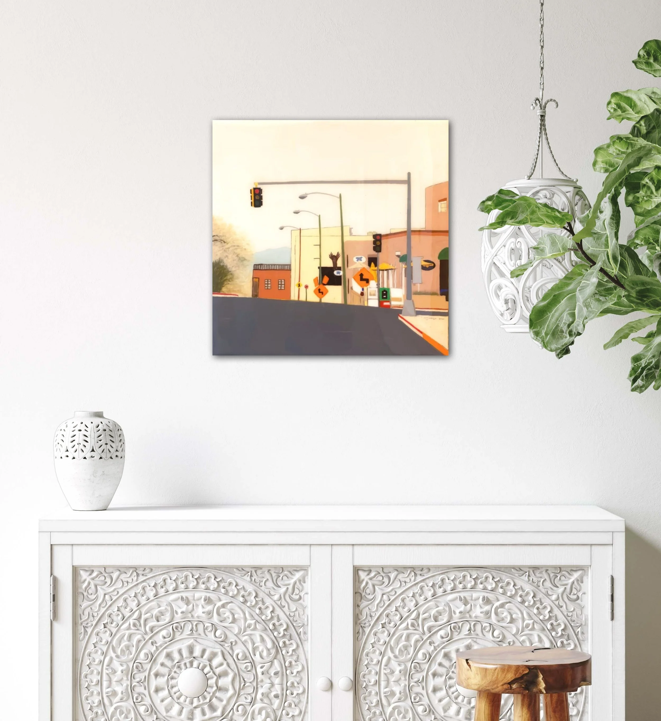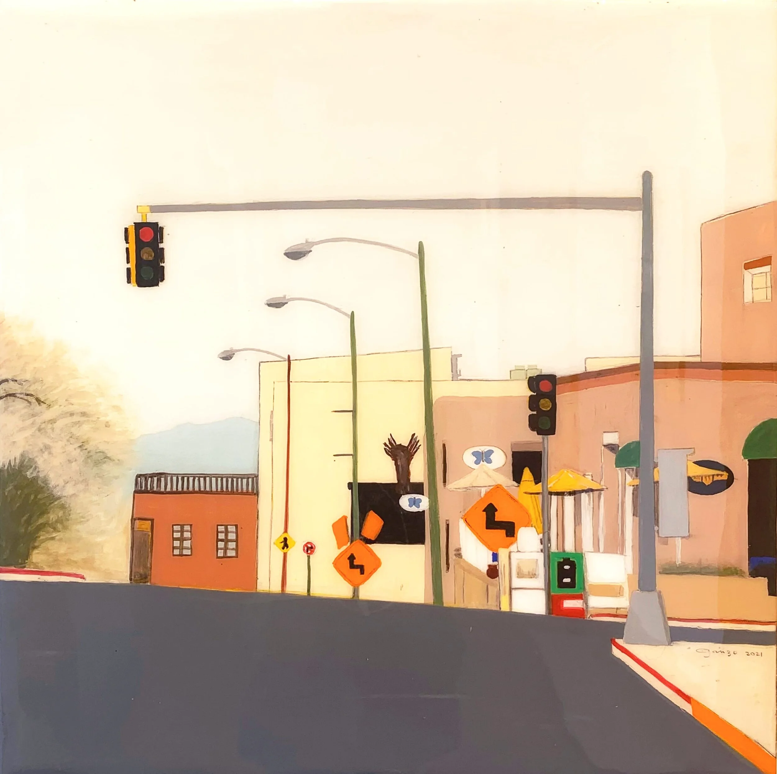 Born and raised in Campeche, Mexico, Omar Ganzo connects to his homeland through his paintings and his poetry, using Surrealist and abstract elements in his work. After moving to Santa Fe, New Mexico, Ganzo expanded his creative practice, working in three dimensions and innovating a multi-media painting process, beginning with a plastered surface then painted with acrylics using a fresco secco technique and finished with an acrylic resin application to add a high gloss to the surface.